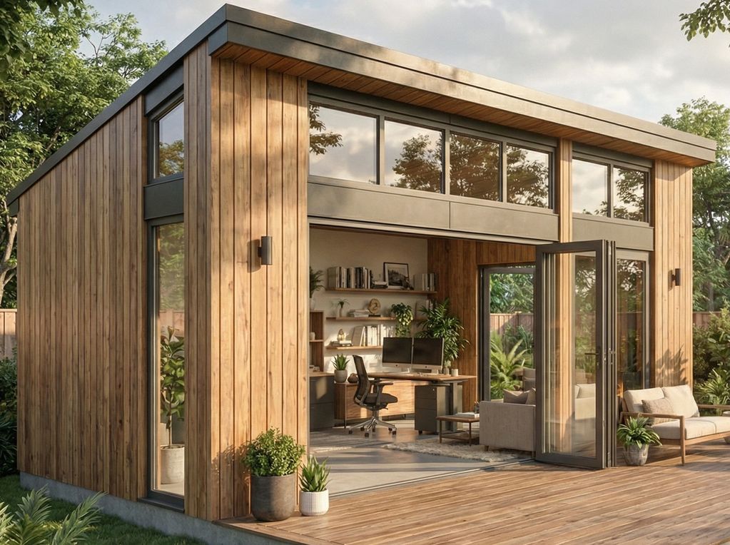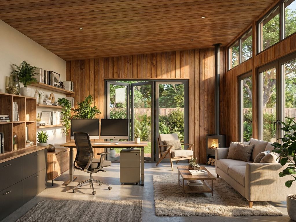 Set within the generous rear garden of a large family house in Acton, West London, this bespoke garden office outbuilding provides a calm, dedicated workspace separate from the main residence. The design responds to the growing need for flexible home-working environments, creating a quiet retreat that supports productivity while remaining visually connected to the surrounding lan